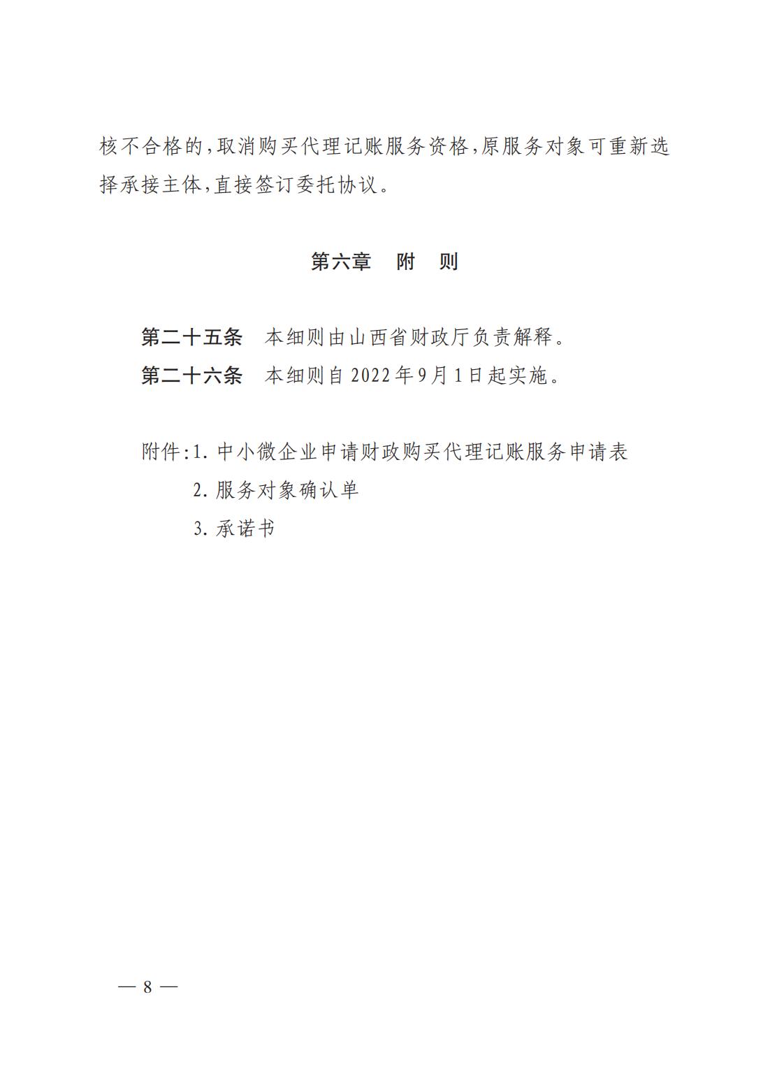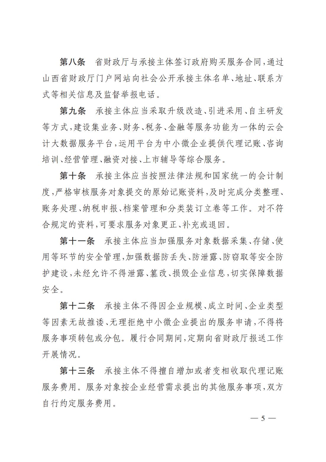 山西省財(cái)政廳為中小微企業(yè)購(gòu)買代理記賬服務(wù)實(shí)施細(xì)則(試行)